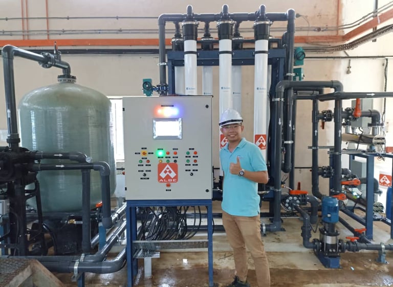 Professional installation and commissioning of ultrafiltration systems PLC control panel.